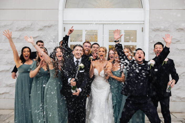Tiffany and Darren's outdoor group wedding bridal portrait
